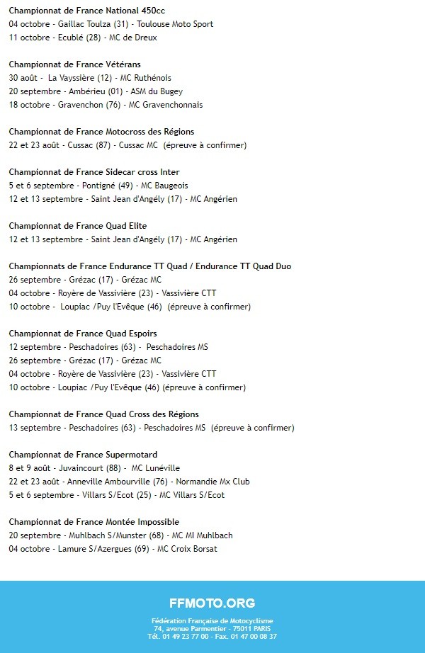 Résultats Motocross